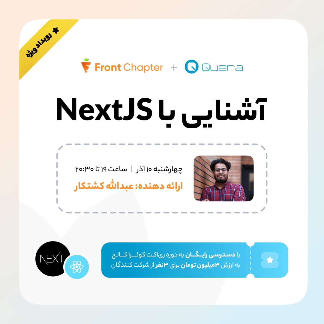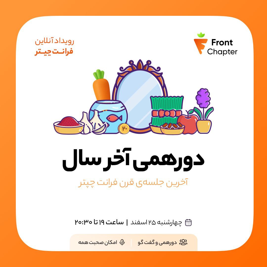 قصهی فرانتچپتر داستان فرانتچپتر از اول سال ۱۴۰۰ شروع شد. وقتی تصمیم گرفتیم یک جامعه از توسعهدهندههای فرانتاند بسازیم و هر هفته جلسهی دورهمی آنلاین داشته باشیم و از اتفاقات و تجربههای تازهی هفتهمون بگیم. سال ۱۴۰۰ جلسهی دورهمی 0